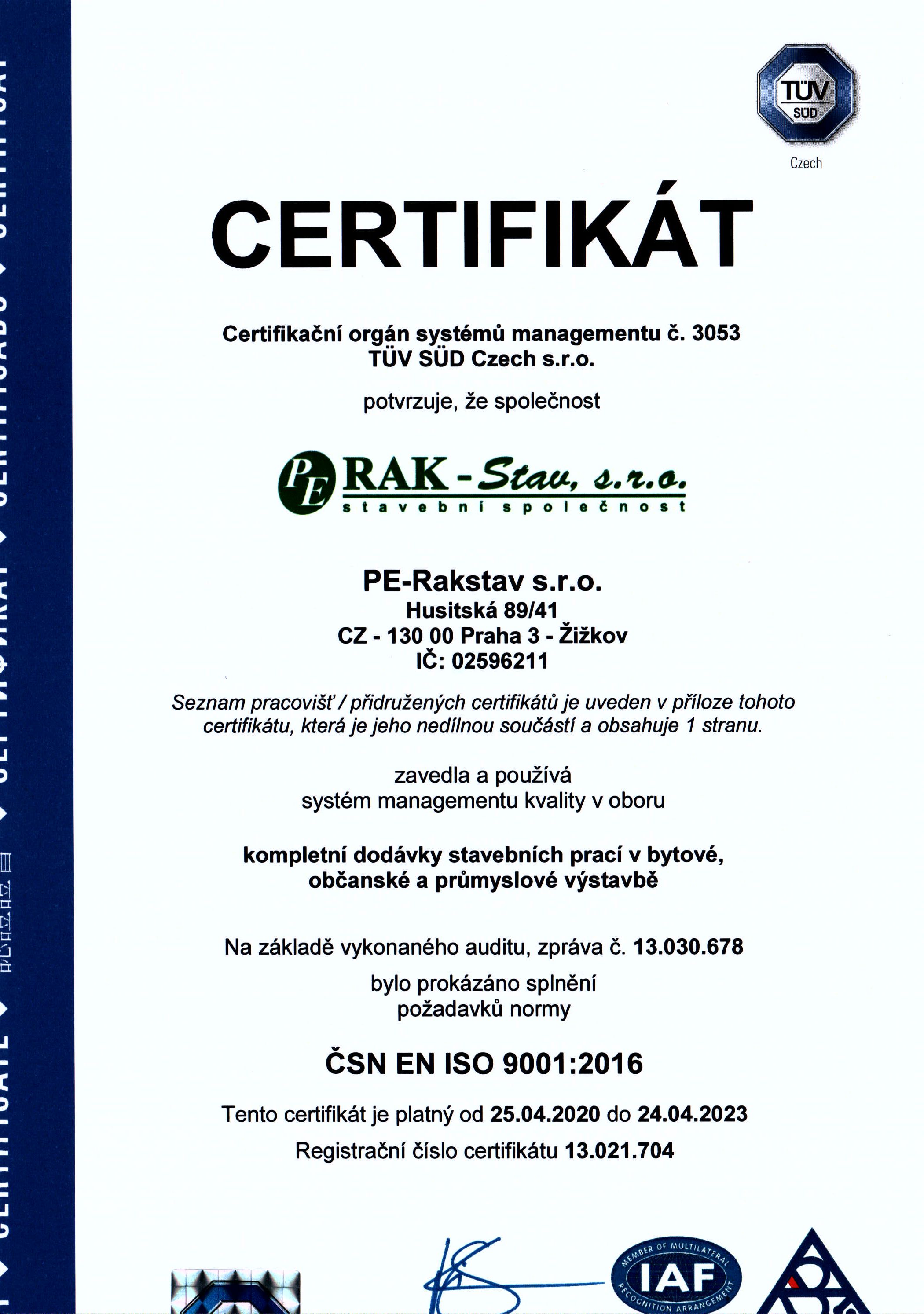 Společnost PE-Rakstav s.r.o. navázala na činnost a dobré jméno firmy RAK-STAV s.r.o. v roce 2014.