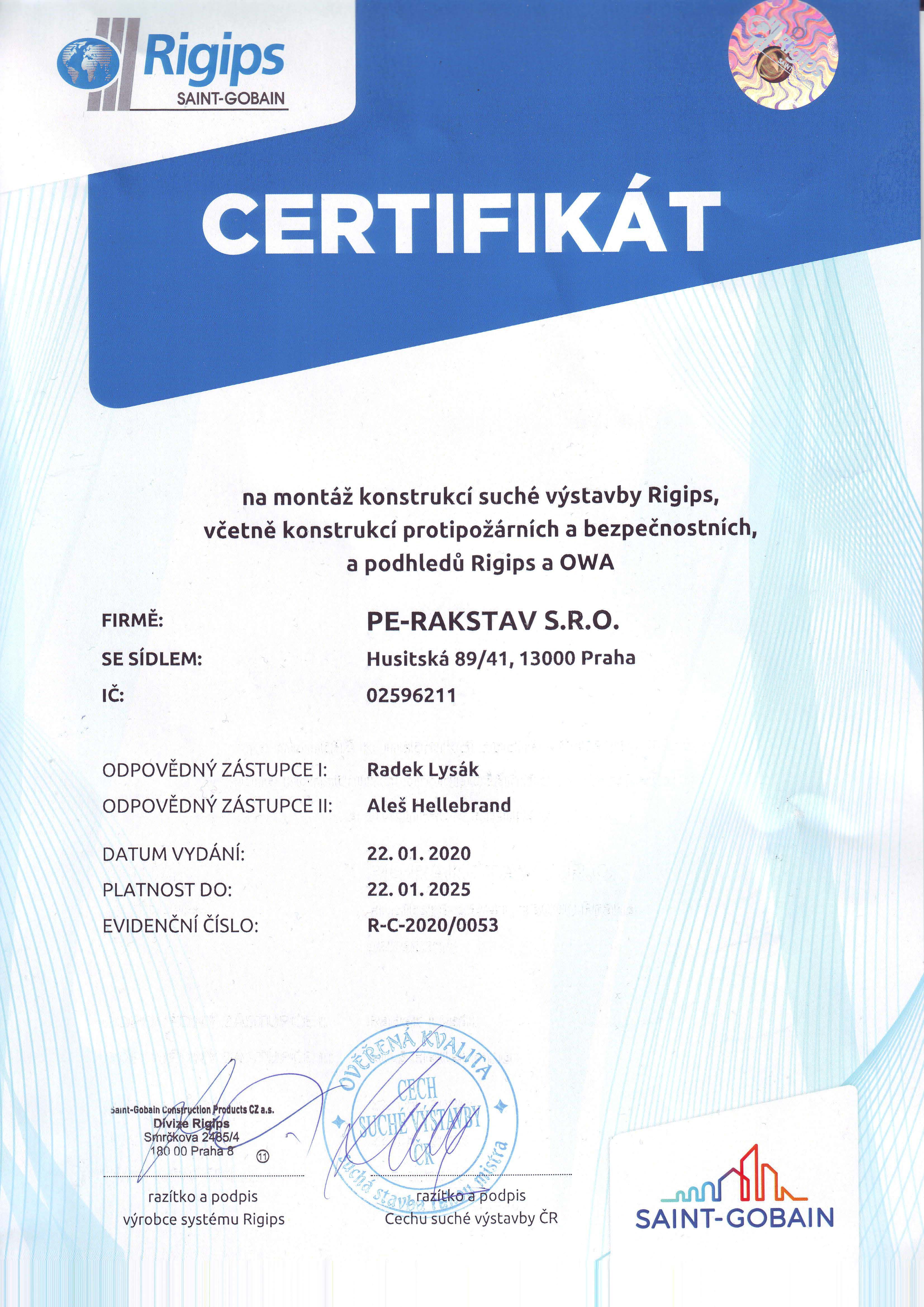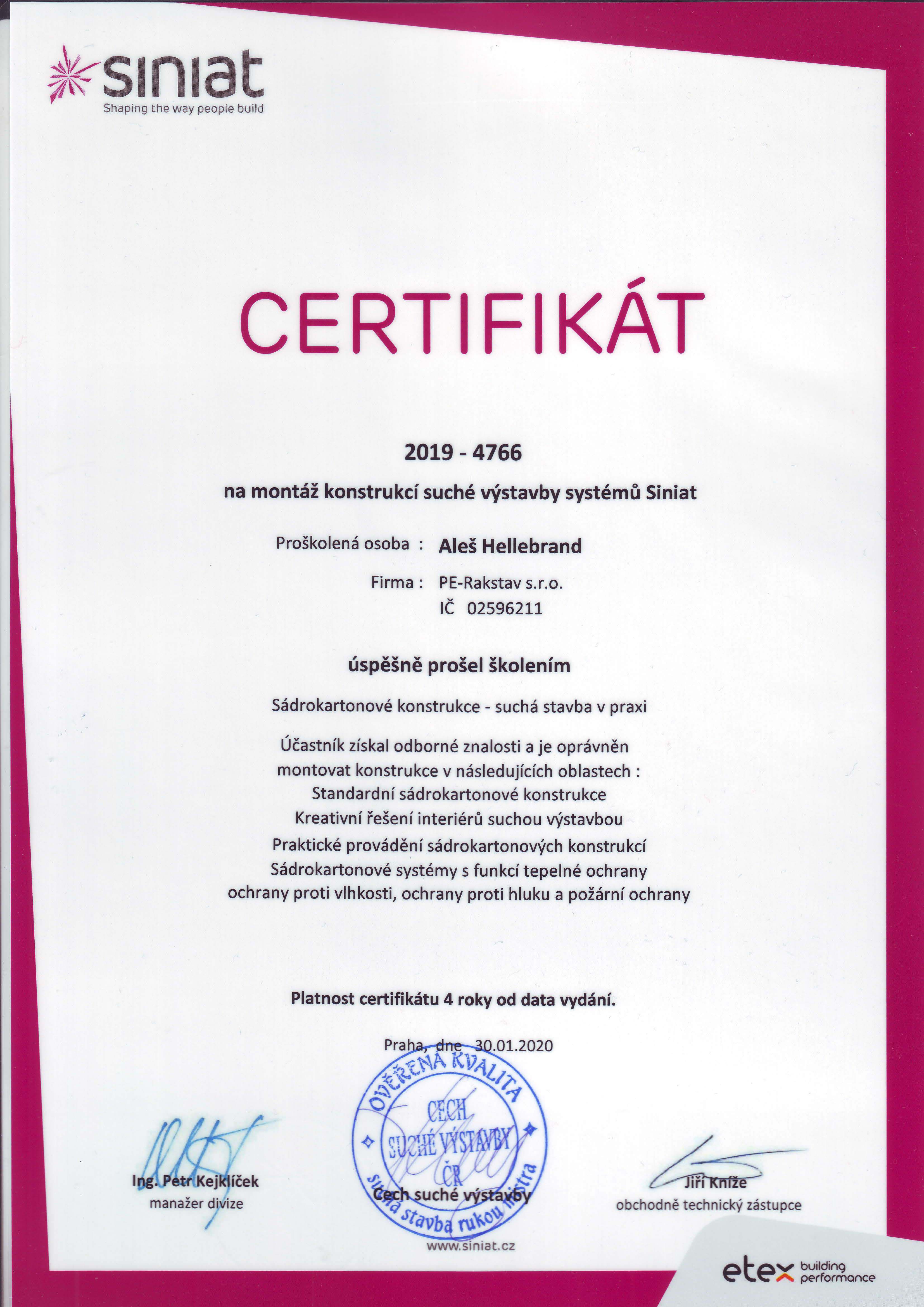 Společnost má zavedený systém managementu a jakosti dle ČSN EN ISO 9001:2016 a je také členem Cechu suché výstavby. Společnost je schopna zabezpečit jakýkoliv rozsah prací v oblasti sádrokartonových konstrukcí a minerálních kazetových podhledů. Jsme vlastníky certifikátů od společností KNAUF, SINIAT, RIGIPS, AMF, ECOPHON a EUROCOUSTIC. Vlastníme oprávnění k montáži protipožárních sádrokartonových konstrukcí.